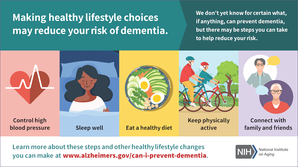 - Manage chronic conditions: High blood pressure, diabetes, and obesity are all risk factors for Alzheimer’s.